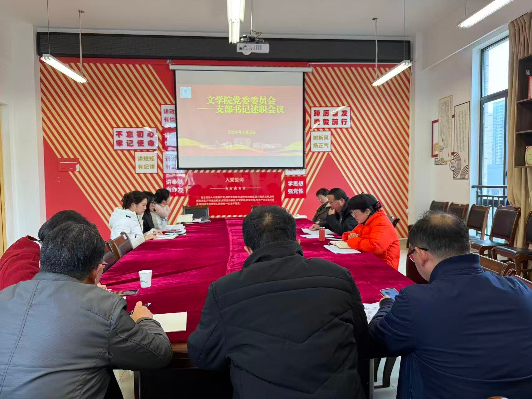 会议最后,周艺就2026年党建工作作出部署:一是以“第一议题”制度为牵引,持续深化习近平新时代中国特色社会主义思想研学;二是实施“组织生活提质工程”,打造一批沉浸式、情景式主题党日品牌;三是健全“党员积分+示范岗”双轮驱动,让党员在教学科研、学科竞赛、社会服务一线打头阵、当先锋;四是完善“书记领办、委员包干、党员攻关”三级责任制,形成可复制、可推广的“文苑党建标准”。