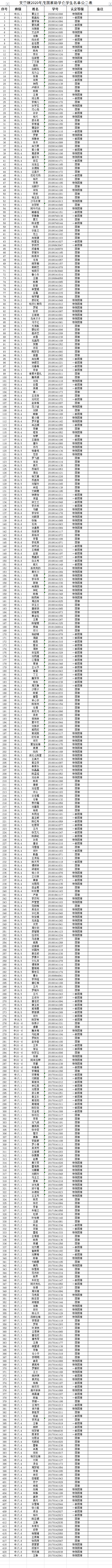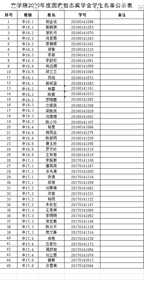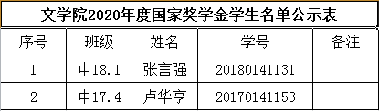 2019-2020tyc5997太阳集团国家奖助学金公示名单