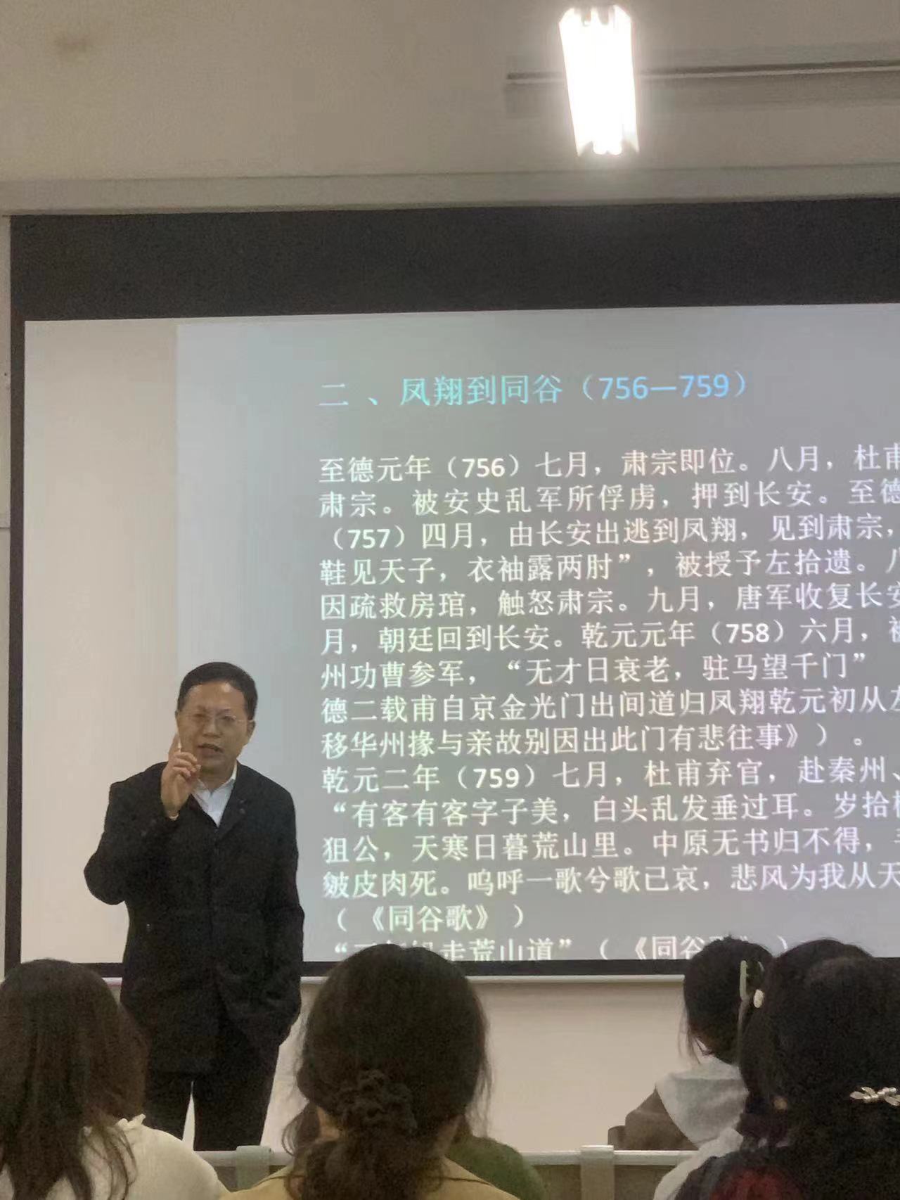 黄全彦老师对唐代大诗人——杜甫的生平和诗歌创作进行了讲解,特别对杜甫旅居巴蜀时期创作的诗歌进行了细致讲解。黄老师感情充沛,带领员工走进杜甫,让员工体会千年前社会急剧变革时期诗人忧国忧民的家国情怀,让人感动不已。在讲解的过程中,黄老师要求当代老员工结合现代社会的实际情况,勇于承担社会责任。黄老师的教学感情充沛,引发员工共鸣。