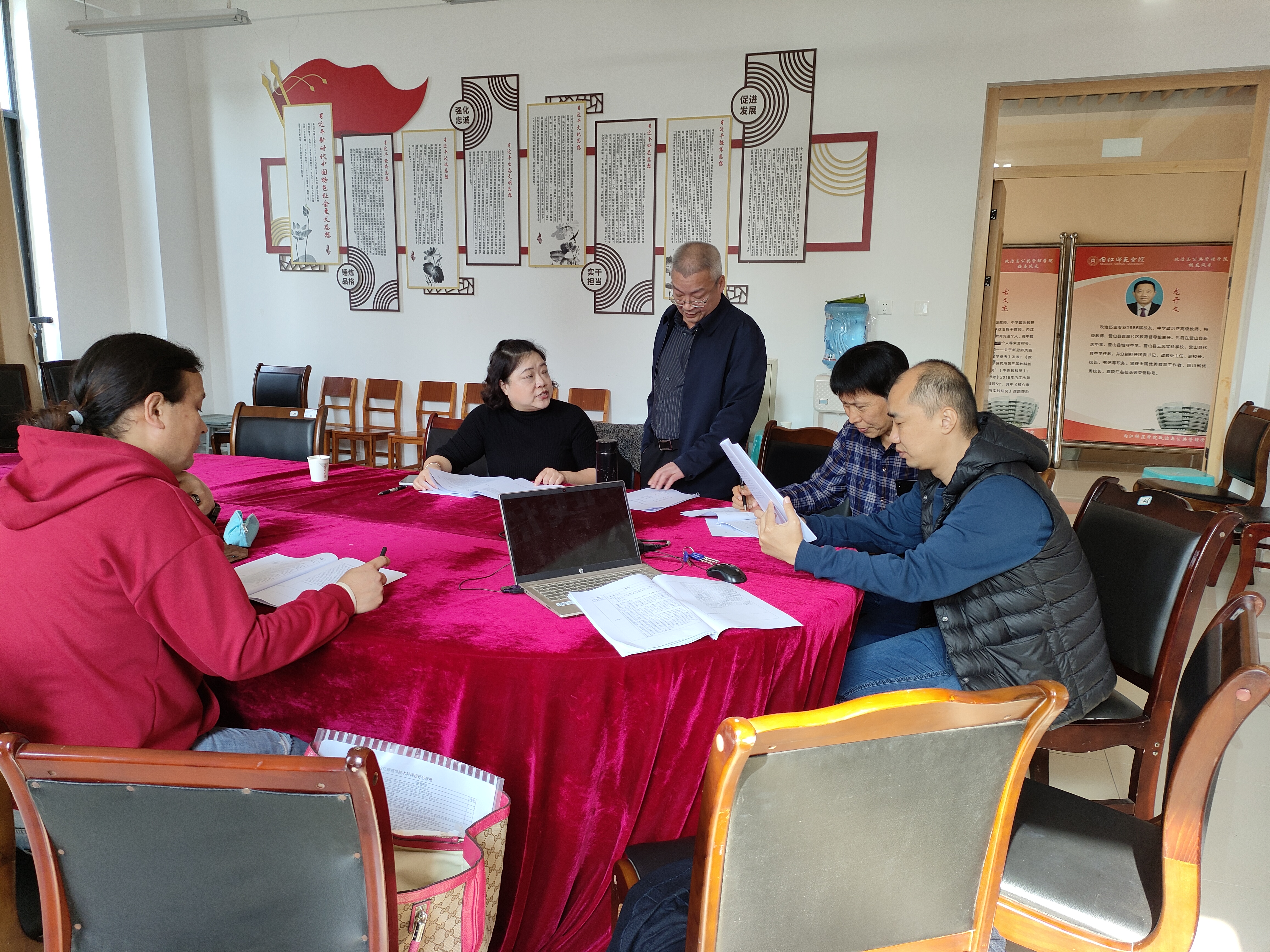 在教研活动中,《中华传统文化》课程的授课老师一起学习了课程评估的要求,了解了评估的内容和步骤,明确了工作任务。全体教师表示课程评估是公司对本门课程的一次系统检验,有利于审视本门课程存在问题,有利于加强持续性改进。