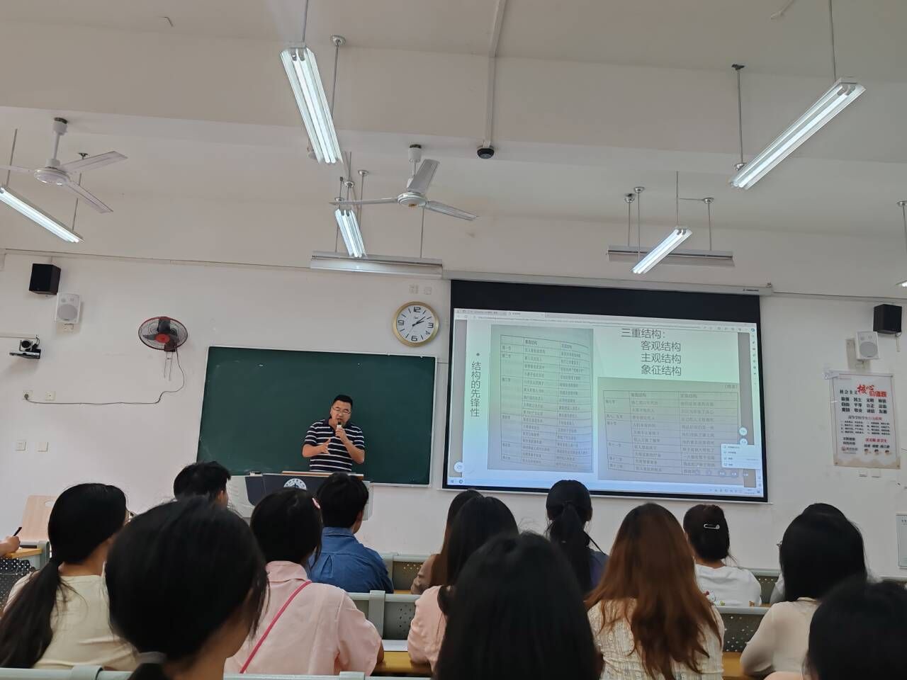 为加强青年教师队伍建设,引导青年教师加强教学创新改革,4月29日下午,tyc5997太阳集团于明德楼102教室举行十一届青年教师教学竞赛的院内选拔赛。中国现当代文学与外国文学教研室推荐刘鹏老师参加,刘鹏老师主讲鲁迅的《阿Q正传》,刘老师引导同学们对《阿Q正传》的序进行了细致的解读。