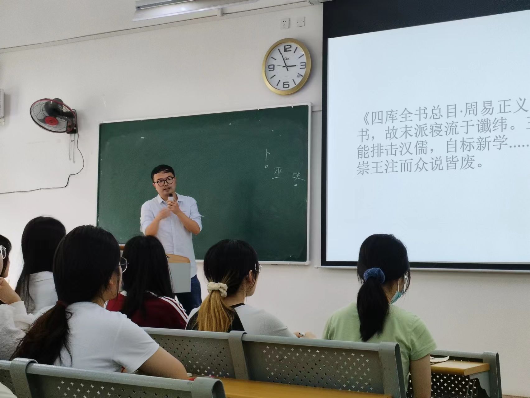 吴文庆博士以“因天象以教人事——《周易正义》导读”为题,带领员工对《周易正义•乾卦》部分进行逐字逐句地文本细读,梳理经传注疏的内在关系与阐释空间。比如乾卦象天,但为何此卦不谓之“天”,而用“乾”。因为天是体,乾是用。《说卦》云:“乾,健也”。而圣人作《易》本以教人,欲使人法天之用,不法天之体。课后,老师们对吴博士的讲课提出了一些问题,讨论了原典教学的优点和必要性。