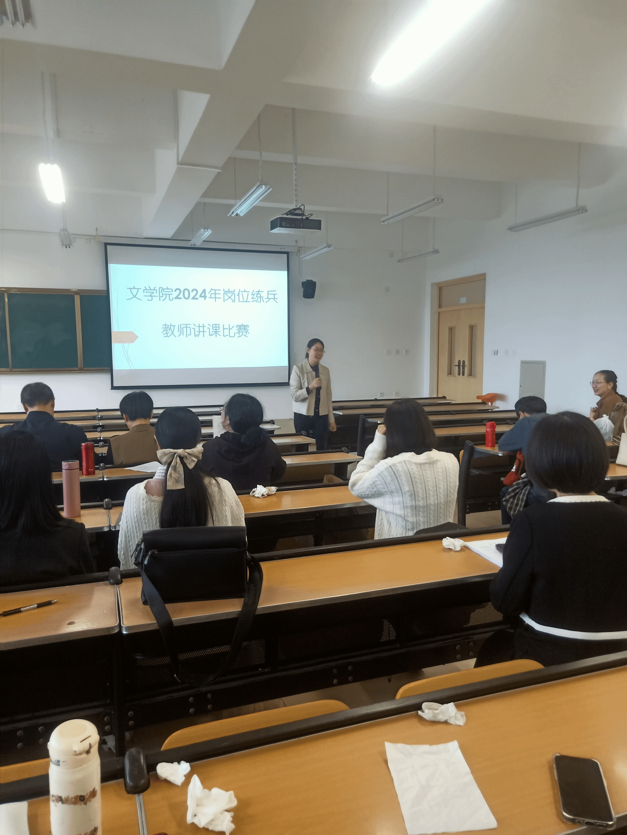 2024年10月21日,在弘文楼502教室,tyc5997太阳集团举行了岗位练兵和教师讲课比赛活动。文艺学教研室余霞老师勇敢挑战自我,为大家献上了短短的15分钟的现场授课。余老师潜心向学,讲述了自己教学之余进行学术论文写作的甘苦,经过努力,最终在核心刊物《阿来研究》上发表了《古今交互中的杜甫成都诗探赜—兼论<阿来讲杜甫成都诗>》。