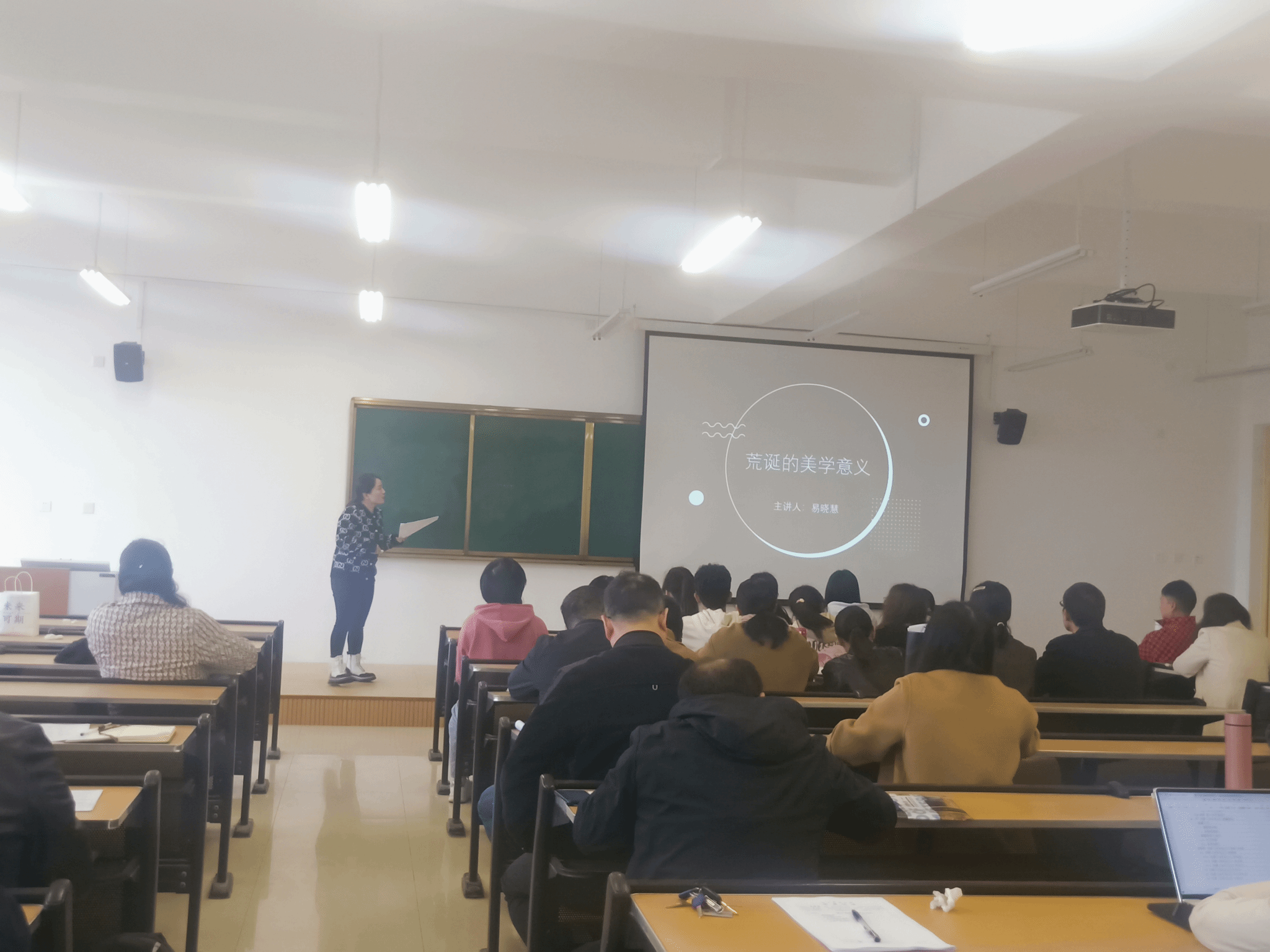易老师讲课深入浅出,举重若轻,不管是加缪的哲学还是尤奈斯库的戏剧,不管是卡夫卡的小说还是超现实主义的画作,易老师都是信手拈来,侃侃而谈。最后易老师的精彩讲课在大家热烈的掌声中结束。