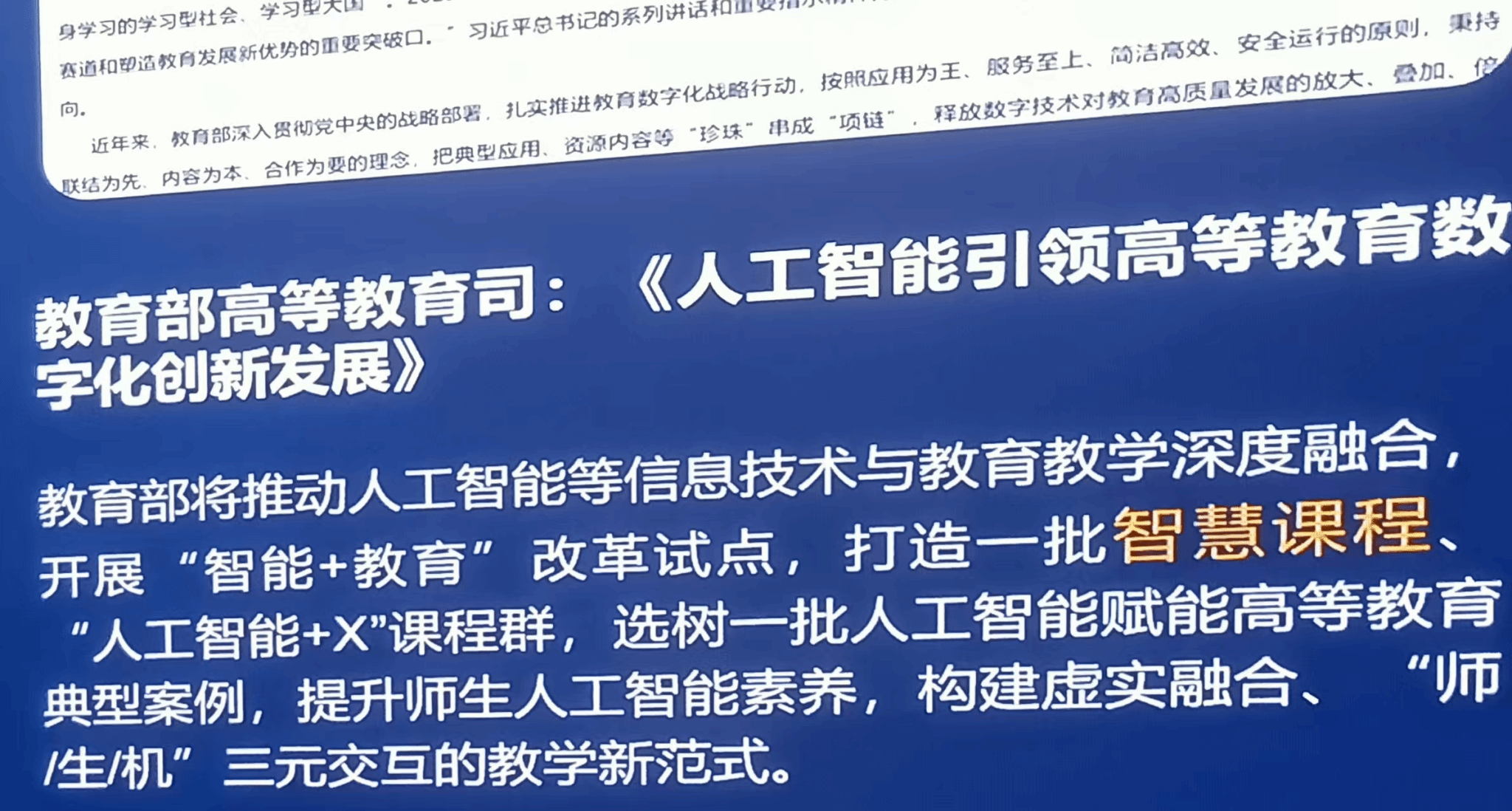 关于人工智能(AI)深度融入大学课程,推动智慧教育发展的表现,一是智能辅助教学与个性化学习。二是跨学科融合与创新课程设计。三是智慧管理与教学效率提升。此外,AI可自动批改作业、生成试题,让教师更聚焦创新教学。