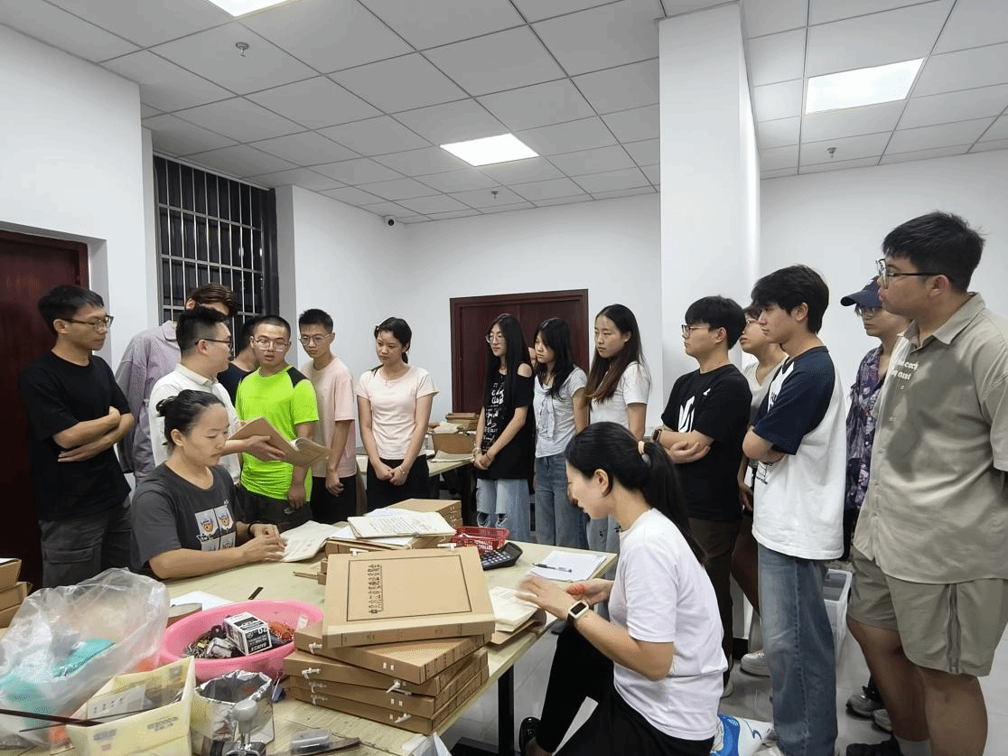 上午8时30分,见习队伍抵达内江市档案馆。在内江市档案馆甘德明调研员和陈勇老师的带领下,师生们实地观摩了档案整理工作流程。专家详细介绍了档案从接收到入库的全过程,包括纸质档案的分类、装订、编目等基础工作。同学们特别注意到,为确保档案安全,工作人员需严格遵守不携带水杯、手机等物品进入工作区域的规定。