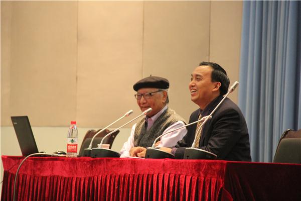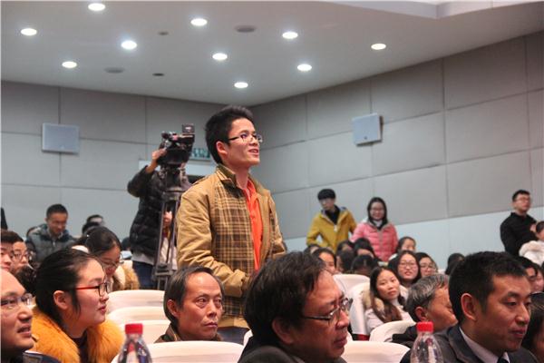 “我打江南走过,那等在季节里容颜如莲花的开落……”公司2013级4班马铭同学朗诵的郑愁予先生的诗歌《错误》作为开场,讲学正式开始。郑愁予先生对公司马铭同学的朗诵给予了高度赞扬。就诗来说,郑愁予先生提出“气质决定内容,内容决定形式”和“人人都可以是诗人,只要你有情绪,在情绪的集中里产生诗”两种观点。并以自己在世人眼中的“浪子诗人”和“仁侠诗人”形象为例说明了他对诗的最本质的理解。