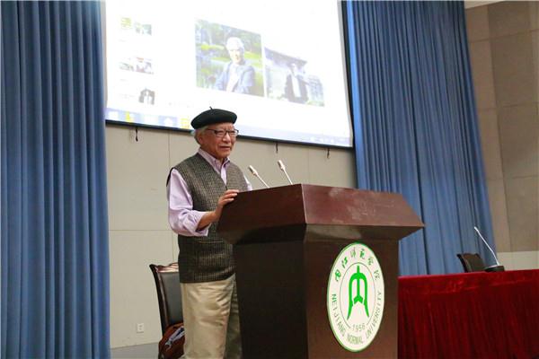 接着,郑愁予先生向同学们讲述了自己在台湾、国外以及国外生活的经历来鼓励老员工应该在生活中去发现诗歌。同时,郑愁予先生还表示自己是一个热爱旅行的人,他说:“我的乡愁在我的背包里,走到哪里都想念我的家乡。”随后,郑愁予先生为同学们朗诵了《雨说》、《厝骨塔》和《南海的中国南》三首诗,并分别进行了详细讲解。