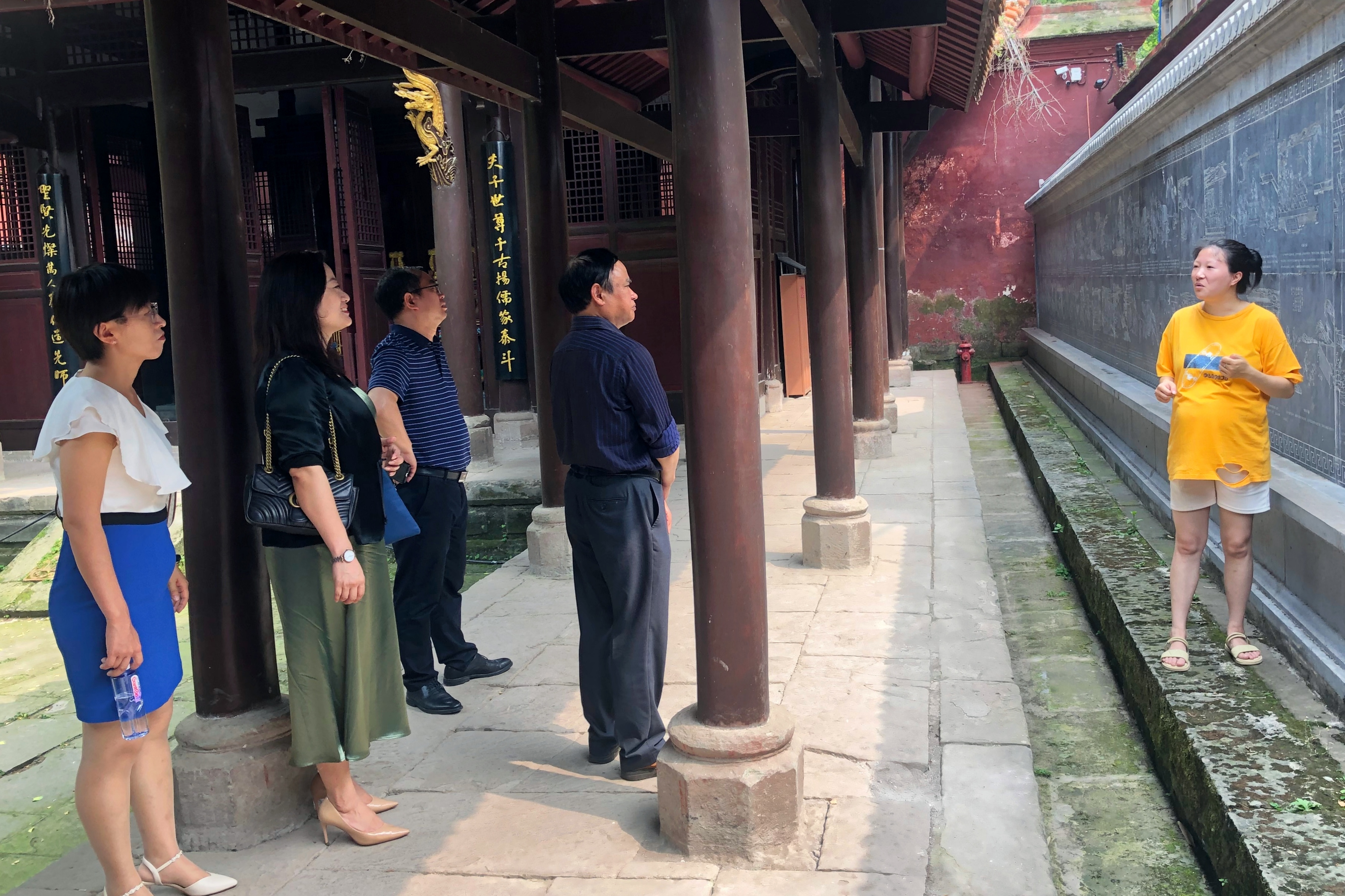 在企业相关负责人的陪同下,公司一行人参观了企业运营的重点项目——资中文庙,全面了解企业的发展情况。紧接着,在座谈会上,企业负责人向老师们介绍了企业的用人需求、未来规划和项目运营情况,并提到,从2021年4月起,企业已经和各公司、培训机构合作开发了一些研学项目,期待公司能够发挥专业优势,为该研学项目的推进提供人才和智力支持。随后,刘书记从公司办学特色、人才培养模式、员工特点等方面进行了全方位的介绍,表示希望以此次交流为契机,进一步深化双方合作,在人才输送和实习基地建设等方面建立起更为密切的联系机制。最后,双方代表在推动产教融合发展、实现校企共赢等方面达成了共识。