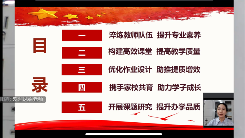 为了贯彻落实好双减政策,在近一年中,冯娟所在的公司多次召开专题会,不断探讨摸索,在实践中总结经验教训,取得了一定的成效。冯娟指出,第一,要淬炼教师队伍,提升专业素养。第二,要构建高效课堂,提高教学质量。第三,要优化作业设计,助推提质增效。第四,还要携手家校共育,助力学子成长。第五,要开展课题研究,提升办学品质。