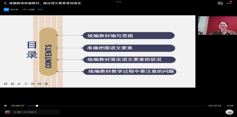 对于提高员工的语文要素,钟老师强调必须要认真钻研教材、吃透教学目标,把握每个单元的学习任务,要有整体性的意识,而不是挖掘单篇文章的教学内容,同时还需要培养员工们阅读整本书的习惯。通过这次观看讲座的学习,我们感触颇深、受益匪浅,为我们对部编版教材的理解指明了方向。