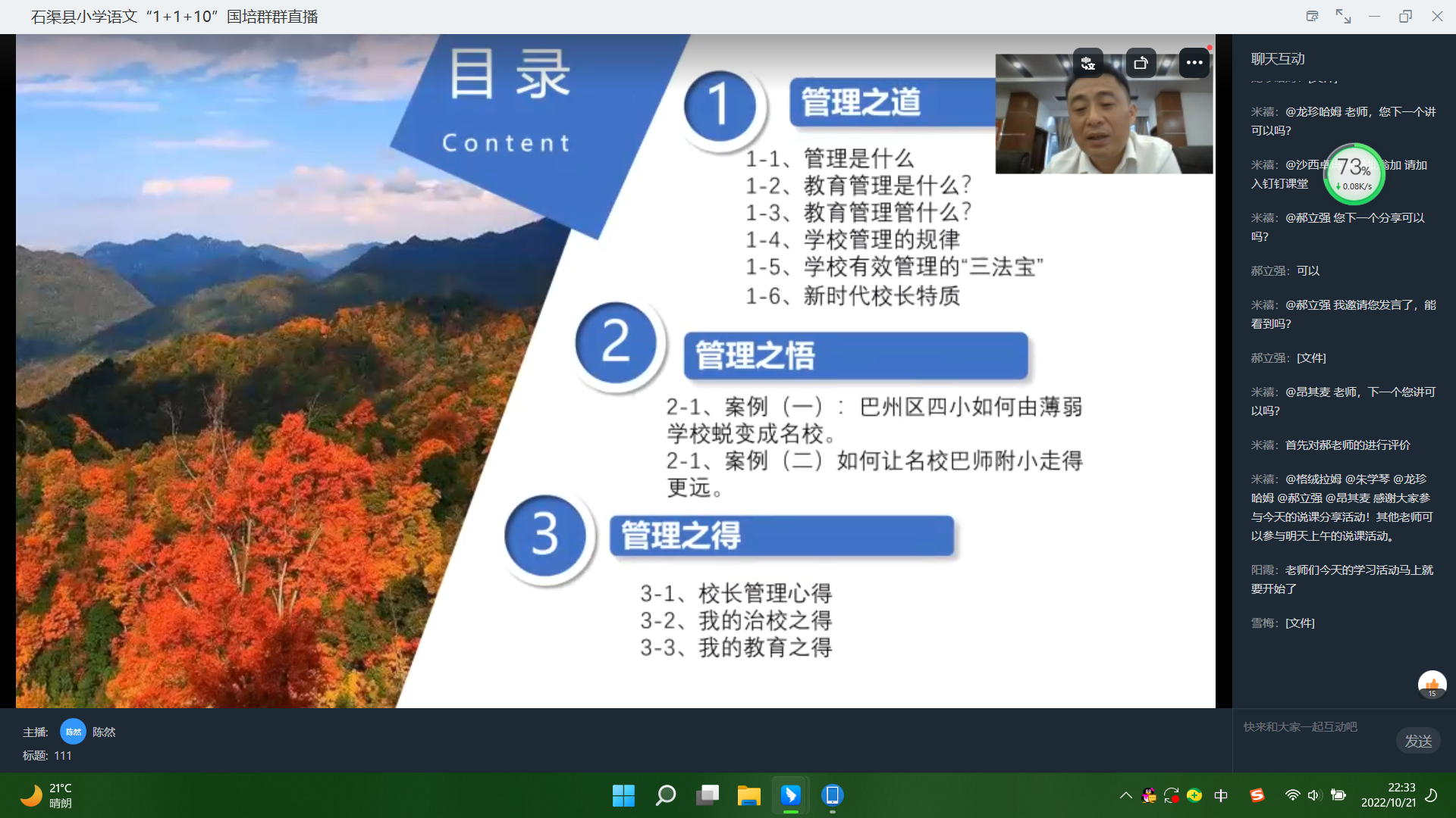为深入落实国培计划,切实提高石渠县国培教师的管理能力。tyc5997太阳集团特邀巴中师范附属实验小学党支部书记、董事长陈然于2022年6月17日晚在钉钉平台开展了题为“探索名校管理规律,争做新时代名董事长”的专题讲座。陈然董事长从公司管理、教学工作、教师个人成长三个层面进行讲解,将对公司教师教育管理能力的提高与发展产生深远影响。