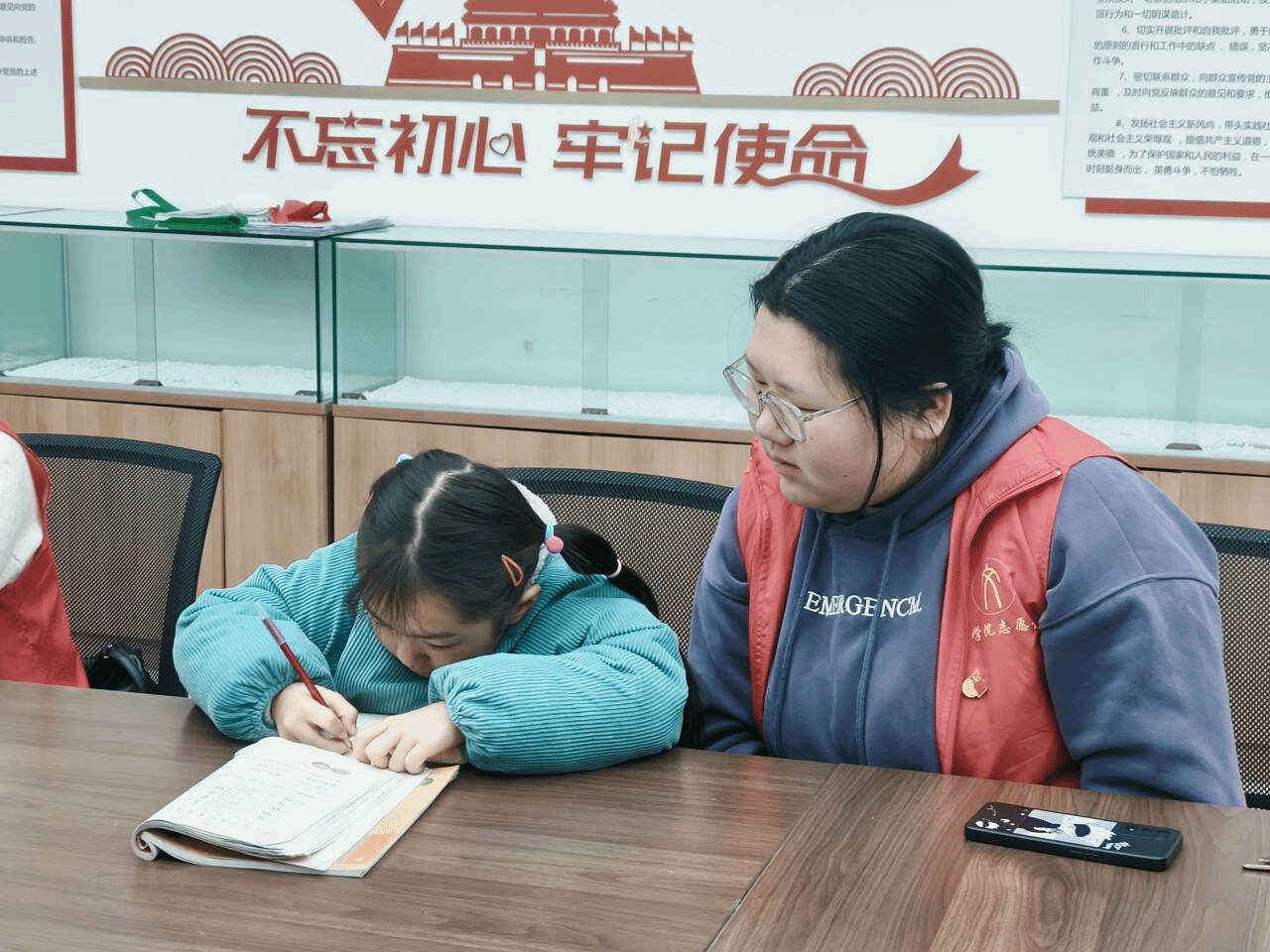 活动现场,志愿者们化身为“学业导师”,为小朋友们提供作业辅导。张文婷同学以其扎实的专业知识,耐心细致地解答小朋友们的难题;崔颂爽同学则用生动有趣的语言,帮助低年级的小朋友更好理解课文内容。张文婷感慨道:“看到孩子们豁然开朗的表情,更加坚定了我服务群众的决心。”